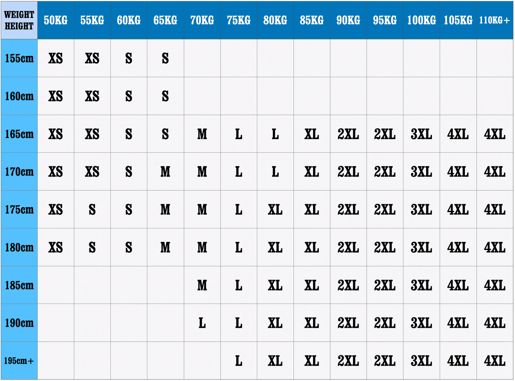 Tailles disponibles: S, M, L, XL, 2XL, 3XL, 4XL